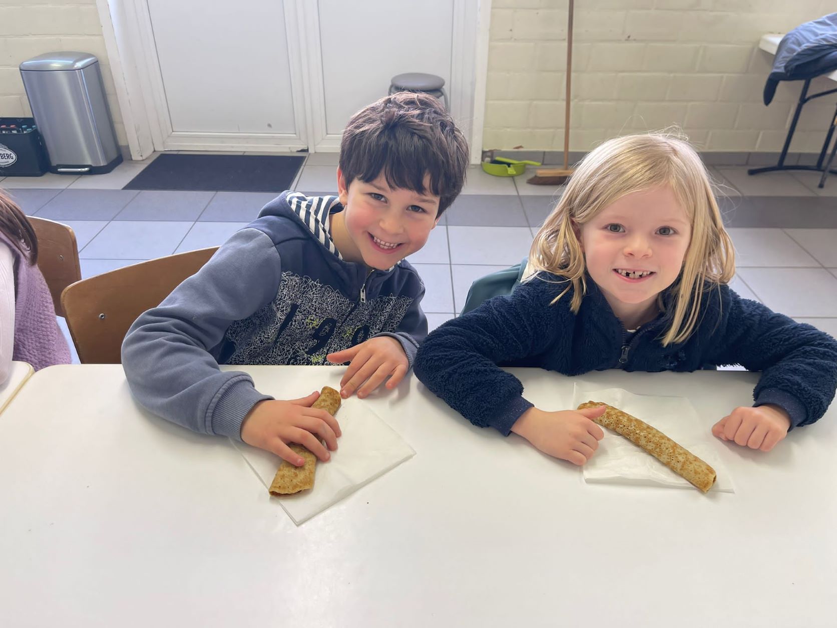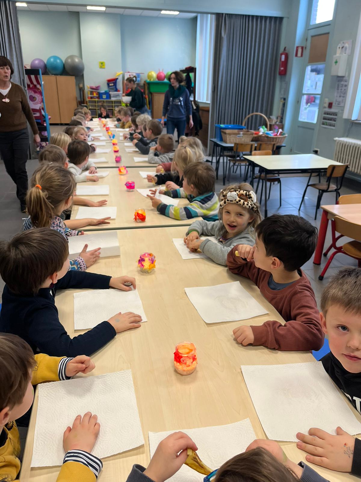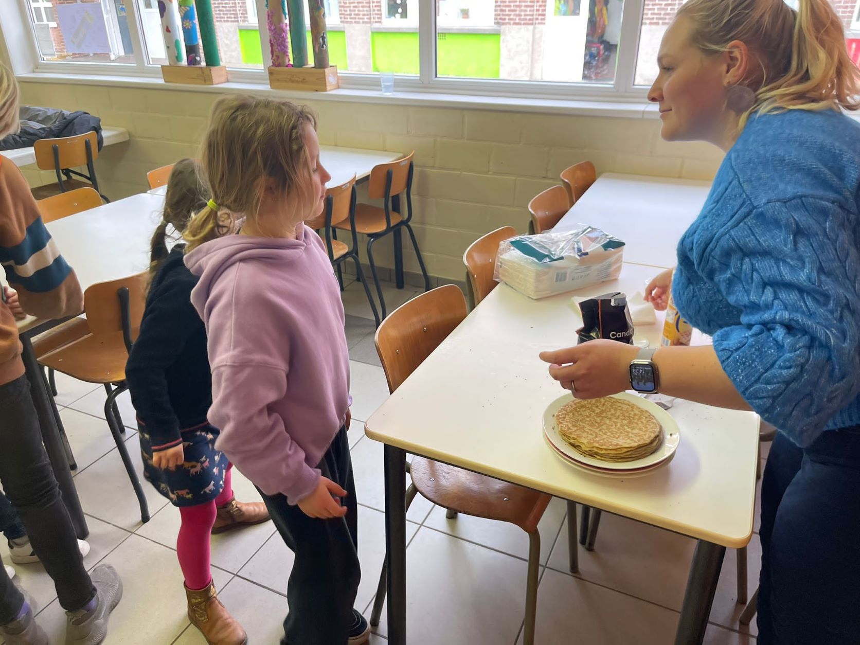 Op de kleuter- en lagere school vierden we het feest van Maria Lichtmis. De kinderen werden in groepen verdeeld en genoten van: luisteren naar verhaal, lichtjes maken en versieren, lied zingen, samen spelen, … . Natuurlijk smulden we van heerlijke pannenkoeken!