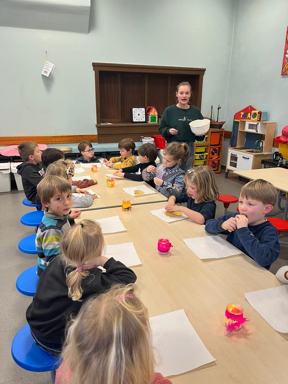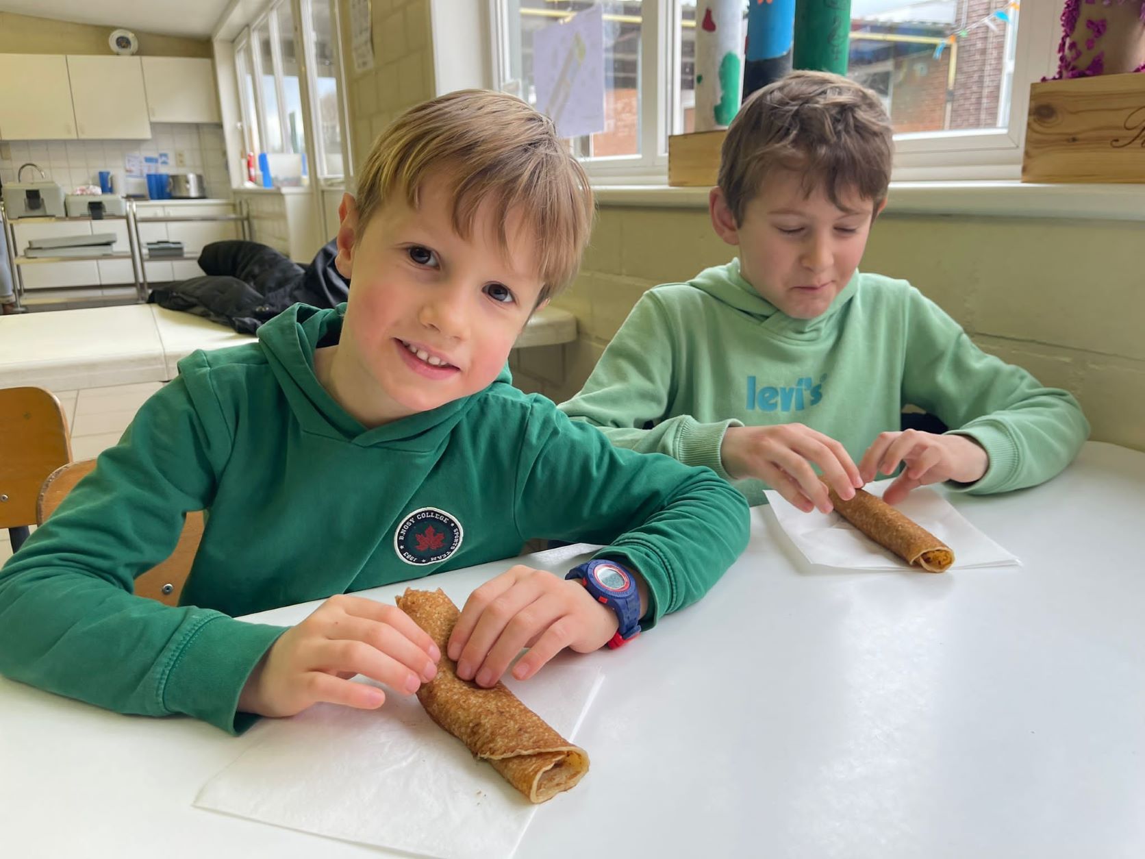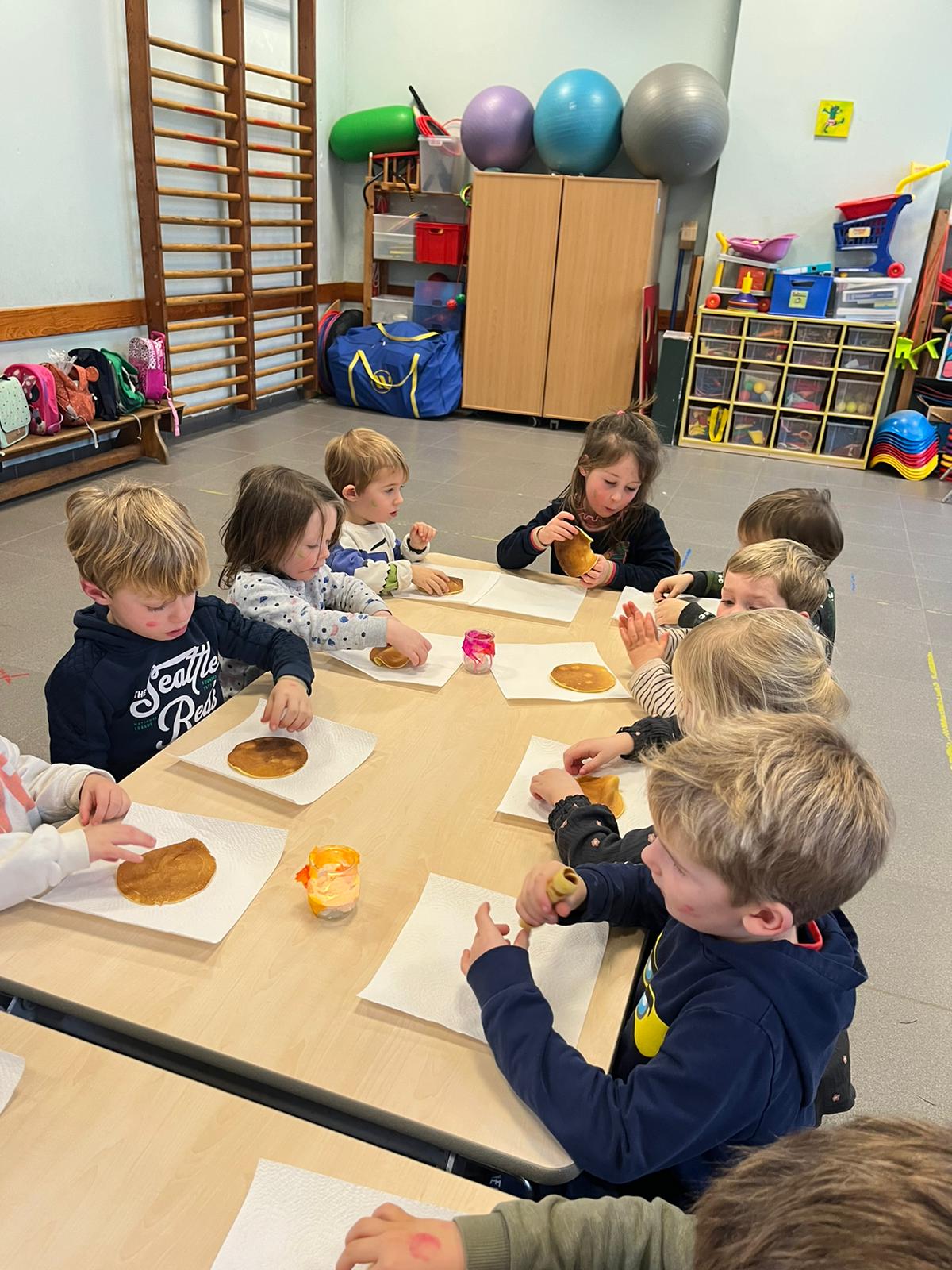 Op de kleuter- en lagere school vierden we het feest van Maria Lichtmis. De kinderen werden in groepen verdeeld en genoten van: luisteren naar verhaal, lichtjes maken en versieren, lied zingen, samen spelen, … . Natuurlijk smulden we van heerlijke pannenkoeken!